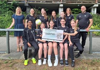 Strahlende Gesichter bei den C-Juniorinnen der SG Waidhofen/Hohenwart/Tegernbach und ihrem Trainer Thomas Bierschneider. Die Raiffeisenbank Schrobenhausener Land eG hat das Team, das die Saison mit einem starken dritten Tabellenplatz abschloss, mit einer großzügigen Spende in Höhe von 1.500,- € hervorragend unterstützt. Vielen herzlichen Dank dafür.