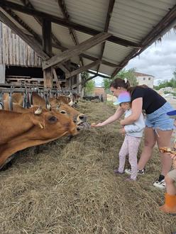 Besonders begeistert waren die Kinder davon, dass sie selbst mithelfen durften. Unter Anleitung übernahmen sie kleine Aufgaben wie das Füttern der Kühe oder der Hasen. Der direkte Kontakt zu den Tieren und das Erleben des Bauernhofalltags machte den Ausflug zu einem besonderen Erlebnis.