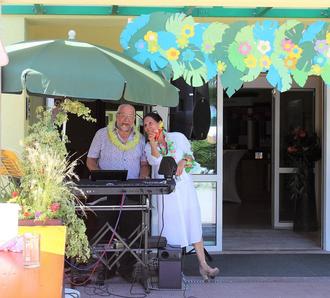 Von den Schirmchen auf den Fruchtcocktails über eine Hawaiianische Tiki Bar bis hin zu Baströckchen und Blumenkränzen, die gesamte Dekoration war von den Mitarbeitern ausgezeichnet auf das Motto „Aloha from Hawaii“ abgestimmt worden. Ein Grill- und Salatbuffet, ein Fotoshooting als hawaiianischer König oder Königin, Spiele aus der Südsee und eine Tanzgruppe „Aloha“ rundeten das gelungene Programm ab. Den Senioren gefiel es sichtlich und Sie sangen und schunkelten begeistert zu den „Gassenhauern“ des Alleinunterhalters mit. Bürgermeister Jürgen Haindl freute sich sehr, die Senioren erstmals auf Ihrem Sommerfest besuchen zu können. In seiner Begrüßungsrede schloss er mit einem Zitat: