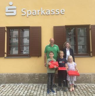Nun war es soweit – die Kinder, deren Ballons die weiteste Strecke zurückgelegt hatten, erhielten von der Filialleitung Stefanie Mohr der Sparkasse Hohenwart ihre Preise Platz 1 - 3.