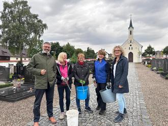 Sie jäten und pflegen seit nunmehr über zwei Jahren ehrenamtlich die Freiflächen auf dem Hohenwarter Friedhof, und sorgen dafür, dass die beruhigenden Grünflächen, auch Grünflächen bleiben und nicht wieder zu Unkrautflächen werden. Diese Maßnahme ist besonders wichtig, da die Rasenflächen für Geh-Beschränkte Personen viel besser begehbar als Kieswege sind. Bei einem Treffen am Friedhof konnte sich Bürgermeister Jürgen Haindl, auch im Namen der Gemeinde, bei den ehrenamtlichen Helferinnen herzlich für ihren enormen Einsatz bedanken.
