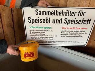 Bis zu drei Liter gebrauchtes Speiseöl und -fett kann in den gelben Öli-Behälter gegeben werden. Ist der Behälter voll, kann er an der Öli-Sammelstelle am Wertstoffhof abgegeben und gegen einen leeren, sauberen Eimer eingetauscht werden.
