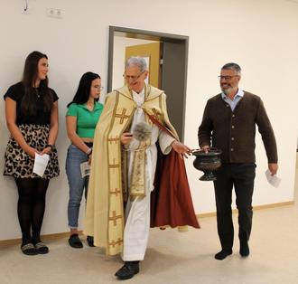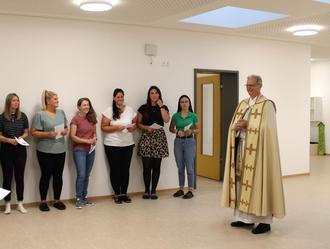 Die Großen, das war die „Prominenz“ wie Bürgermeister Jürgen Haindl, die Marktgemeinderäte, die Krippenleiterin Stephanie Buchhard mit ihrem Team, die Mitarbeiter vom Bauamt der Gemeinde Hohenwart und die Verwaltungsleiterin der Pfarreiengemeinschaft Frau Beate Dick waren am Montag, den 28.08.2023 vor Ort, um der Segnung von Pfarrer Peter Stempfle beizuwohnen.