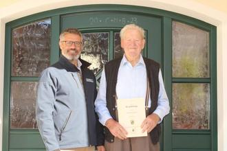 Bürgermeister Jürgen Haindl und Jubilar Johann Seitz
