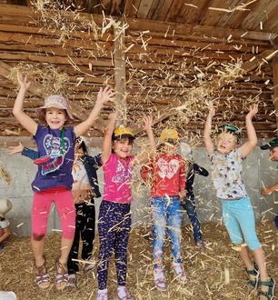 Nach den vielen Informationen durften wir noch den Hof erkunden, rumflitzen und uns am Strohtrampolin austoben.