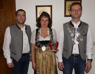v.l. Sportleiter Christian Neukäufer, Damenschützenkönigin Hermine Bruckböck, Vizekönig Robert Weichselbaumer