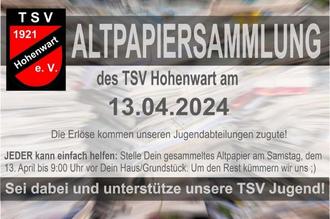 Wenn mehr Haushalte im Gemeindegebiet Hohenwart zum Sammeln bereit wären, könnten wir wesentlich mehr Geld für unsere Jungs und Mädels erwirtschaften.
