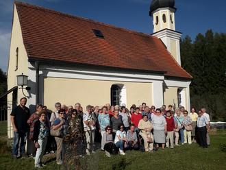 Goldener Herbst in der Hallertau - und die KLB Pfaffenhofen begab sich am 3. Oktober mit voll besetztem Reisebus zur alljährigen kulturellen Exkursion kleinerer Kirchen und Kapellen. Ziele waren diesmal die Hofkapelle der Familie Biebel in Preinersdorf, zwei Kapellen in Hüll und die beiden Kirchen von Geroldshausen. Interessante Beschreibungen und Führungen, sowie gemütliches Beisammensein bei Kaffee und Kuchen waren dabei selbstverständlich. Allen, die diesen besonderen Tag geplant und mitgestaltet haben, ein herzliches Vergelt´s Gott!