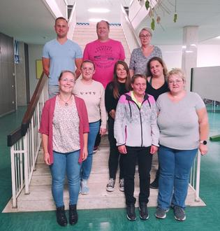 Christian Riebe, Andreas Pichler, Melanie Neugebauer (hintere Reihe von links), Olga Rinkens, Sandra Hirner, Sandra Knopf (mittlere Reihe von links), Monika Kellermann, Kathrin Koppold und Heike Hinz (vordere Reihe von links) freuen sich darauf, im Schuljahr 2023/24 das Schulleben aktiv mitgestalten zu können sowie als Ansprechpartner für die Elternschaft da zu sein (nicht auf dem Bild: EB-Mitglied Elvira Schmidmeir).
