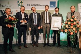 Christa Walter, Inhaberin der Waltron GmbH aus Wolnzach, ist die diesjährige Preisträgerin des Unternehmerpreises. Nach der Laudatio von Josef Schäch wurde der Preis von Landrat Albert Gürtner, Bernd Huber (Wirtschaftsbeirat) und Johannes Hofner (KUS) stellvertretend an den Geschäftsführer Dr. Andreas Able und ihren Enkelsohn überreicht.