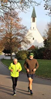 Da ließ es sich auch Hohenwarts Bürgermeister Jürgen Haindl nicht nehmen, den Albert zumindest bei seiner letzten Laufetappe zu begleiten. Als ehemaliger Sportlehrer und begeisterter Läufer war dies für das Rathausoberhaupt konditionell überhaupt kein Problem und so konnten sich die beiden Ausdauersportler während des Laufs auch gut unterhalten. Was die beiden alles besprachen, wurde nicht überliefert, es wird jedoch gemunkelt es könnte durchaus um ein geplantes karitatives Laufprojekt gegangen sein.