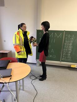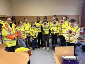 Die Verkehrssituation an der GMS ist derzeit durch die Neubaumaßnahmen der Kinderkrippe und der neuen Schule am sogenannten Campus sehr angespannt. Für die Schüler gestaltet es sich teilweise zum Spießrutenlauf, um die Schulstraße zu überqueren. Hier musste eine Lösung gefunden werden. Aufrufe an die Eltern, sich als Schulweghelfer zu engagieren, brachten nicht den erhofften Erfolg. Jedoch konnte die Konrektorin Sonja Saffert in ihrer ehemaligen 6. Klasse verantwortungsbewusste Schülerinnen und Schüler für diese Aufgabe gewinnen. Polizeihauptmeisterin Constanze Bayerl übernahm nun in der dritten Novemberwoche die Ausbildung von 8 Schülern und einer Schülerin der Klassen 7a und 7m. Dafür waren 4 Nachmittage zusätzlich zum regulären Unterricht angesetzt, an denen die Jungs und das Mädchen interessiert und engagiert teilnahmen. Ein Highlight war der Dienstagnachmittag. Roland Dürr von der Verkehrswacht Ingolstadt und Polizeihauptmeister Mair kamen dazu, damit das Thema Anhalteweg real behandelt werden konnte. Dürr fuhr mit verschiedenen Geschwindigkeiten mit seinem PKW an der Gruppe vorbei. Nun hieß es schätzen: Wie schnell war das Auto unterwegs? Wie lange dauert der Bremsweg? Woraus besteht der Anhalteweg? Erstaunlich die Erkenntnis, dass dieser sich zusammensetzt aus Reaktionsweg und Bremsweg und der Reaktionsweg dabei auch unterschätzt wurde. Die Teilnehmer konnten hier für verschiedene Verkehrssituationen sensibilisiert werden. An den anderen drei Nachmittagen war Theorie angesagt. Am Freitag wurde die Prüfung geschrieben. Alle 9 Jugendlichen bestanden diese und dürfen sich nun offiziell ihrer Aufgabe als Schülerlotsen widmen. Damit sie gut sichtbar sind, wurden sie mit den Leuchtjacken und Wollmützen für den Winter und Warnwesten für den Sommer ausgestattet. Natürlich erhielten sie auch die benötigten Winkerkellen. Rektorin Patricia Häuslinger bedankte sich zum Ende der Ausbildung bei Bayerl mit einem Blumenstrauß für ihre sorgfältige Vorbereitung dieses außergewöhnlichen Unterrichts. Zur Unterstützung der Schülerlotsen kommen noch die beiden Hausmeister Andreas Lacher und Alexander Haltmair sowie ein Vater Herr Hangl dazu. Jetzt stehen alle in den Startlöchern und würden am liebsten gleich am Montag mit ihrem Dienst beginnen. Es ist jedoch noch etwas Geduld haben angesagt. Die Marktgemeinde Hohenwart wartet dringend auf die notwendigen Schilder, die auf die Verkehrshelfer hinweisen müssen. Dann soll noch eine sogenannte Lotsenfurt die Schulkinder farblich über die Straße leiten. Interessierte Eltern, die diese ehrenamtliche Arbeit für die jüngsten Verkehrsteilnehmer unterstützen möchten, dürfen sich gerne an die Schulleitung wenden. Und das sind unsere Schülerlotsen namentlich: Tim Auner, Johann Kneilling, Leon Kreitmayr, Josef Meir, Vahaj Mohammad Arif, Jonas Nenno, Javad Rustami, Matija Tomasek und Taylor Wallrapp