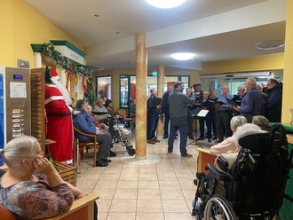 Der Männergesangsverein Liederkranz aus Hohenwart gab im Seniorenzentrum Novita in Hohenwart ein adventliches Konzert. Dirigent Bernhard Kipfelsberger erfreute mit seinem Chor die Senior*innen mit Weihnachtsliedern, die von den Bewohner*innen mitgesungen und mitgesummt wurden. Es gab von allen Seiten Applaus!
