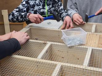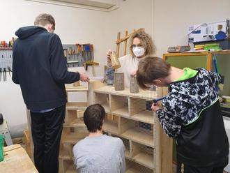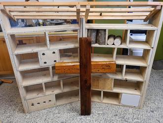 Unter der Anleitung der Heilpädagogin Claudia Gambeck und des Therapeuten Markus Schwarz bauen vier junge Männer aus dem Kinder- und Jugendbereich von Regens Wagner Hohenwart an einem großen Insektenhotel für den Hohenwarter Friedhof. Mittlerweile ist das Roh-Gerüst fertig, und es wurde bereits mit den Füllungen begonnen. Bei dieser Tätigkeit werden die vier „Bastler“ von vielen Wohngruppen unterstützt. Diese sammeln Schneckenhäuser, Zapfen und Hölzer. In Äste und Ytong-Steine werden Röhren gebohrt. Bereits die Kleinsten aus der SVE (schulvorbereitende Einrichtung) sind mit Begeisterung beim Sammeln behilflich. Nach Fertigstellung soll das Insektenhotel am unteren Eingang gegenüber dem Kindergarten aufgestellt werden. Hohenwarts dritte Bürgermeisterin Andrea Widl konnte sich persönlich ein Bild von den Fortschritten machen, und anschließend beim „Bau“ behilflich sein.