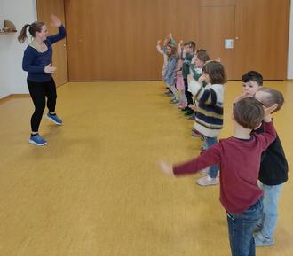 Letzte Woche durften sich die Vorschulkinder über eine ganz besondere Aktion freuen. Gemeinsam mit Ulrike Rockermeier erlebten sie eine fröhliche und bewegungsreiche Zumba Kids-Stunde.
