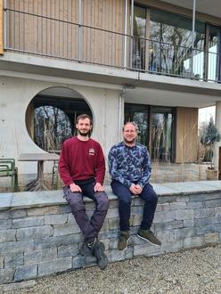 V.l.: Malte Erhardt, Gewinner des bundesweiten Bildungspreises 2023 im Garten- und Landschaftsbau, zusammen mit Moritz Fahn, Geschäftsführer der Fahn GmbH & Co KG.