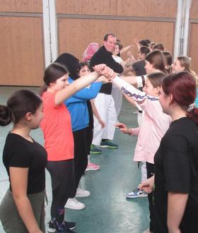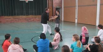 Eine außergewöhnliche Sportstunde durften die Grund- und Mittelschülerinnen und -schüler der Klassen 1-7 am Montag und Dienstag, 13.02. und 14.02.2023 erleben. Karatelehrer Carsten unterrichtete an zwei aufeinanderfolgenden Tagen alle Klassen in den Anfängen der Selbstverteidigung. Die 45 Minuten flogen nur so vorbei. Alle ware begeistert dabei und führten die kurzen, einfachen, aber mit Sicherheit wirkungsvollen Handgriffe eindrucksvoll aus. Das Geheimnis der Übungsstunde lag darin, wie Kindern aufgezeigt werden kann, dass sie sich wehren können, wenn sie wissen, wie man sich das Überraschungsmoment zunutze macht. Lehrer Christian Sutner organisierte die ganze Aktion mit einem Mitarbeiter der Karate Altinger Gruppe.
