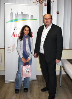 Erster Bürgermeister Alexander Schrüfer lobte den Einsatz des Christkinds, das den Aufseßer Weihnachtsmarkt mit einem Gedicht eröffnete. Amina Klaus bekam zum Dank einen Gutschein vom Kintopp Hollfeld und Süßigkeiten.