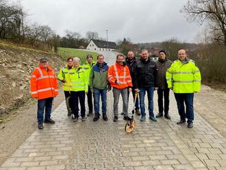 Das erste Projekt der Dorferneuerung in Aufseß wurde teilweise fertiggestellt, die Straßen- und Gehwegebereiche konnten der Gemeinde Aufseß übergeben werden. Der Bolzplatz und Restarbeiten an den Wegen werden 2024 fertiggestellt. Auf dem Foto sind die Teilnehmer der Bautechnischen Abnahme zu sehen – neben den Mitgliedern der TG Dorferneuerung unter der Leitung von Frau Stich vom Amt für Ländliche Entwicklung Oberfranken in Bamberg haben weitere Mitarbeiter vom Amt sowie vom Verband für Ländliche Entwicklung und natürlich Jürgen Lämmlein von der ausführenden Baufirma Lämmlein aus Wüstenstein teilgenommen.