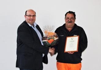 Bürgermeister Schrüfer gratulierte Wengert zum Jubiläum und überreichte eine Urkunde und ein Geschenk. Er wünschte ihm weiterhin viel Spaß und Freude bei der Arbeit und hofft, dass er der Gemeinde noch lange „bis zur Rente“ erhalten bleibt.