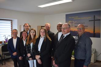 Martin Schrüfer hat mit seiner Familie in Hollfeld, am Spitalplatz Nr. 4, ein Bestattungsunternehmen eröffnet. Im Beisein von Pfarrer Thomas Oehmke und Pfarrer Matthew Anyanwu, wurden die Räumlichkeiten kirchlich gesegnet und ihrer Bestimmung übergeben. Neben dem Büro befindet sich auch ein Ausstellungsraum für Särge und Urnen, sowie Bestattungszubehör. Beide Pfarrer weisen bei ihrer Segnung auf die Wichtigkeit eines solchen Unternehmens hin. Geburt und Tod gehören zum Leben einer Gesellschaft. Erster Bürgermeister Hartmut Stern überreichte zur Eröffnung eine Wanduhr mit dem Wappen der Stadt Hollfeld. Er zeigte sich erfreut darüber, dass durch die Eröffnung dieses Geschäftes wieder ein Leerstand in der Innenstadt beseitigt wurde und wünschte der Familie für die Zukunft alles Gute. Die besten Wünsche seitens der Aktionsgemeinschaft Lebendiges Hollfeld überbrachte Dritter Bürgermeister Thomas Appel.
