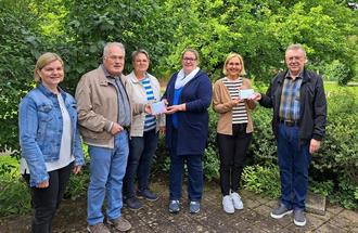 Unser Bild zeigt bei der Spendenübergabe v.l.n.r.: Tanja Teufel und Eberhard Ley vom Ensemble, Elke Wuthe von der Diakonie Verbund Kulmbach, Simone Rausch, die Leiterin der Kita in Wonsees, Uli Appel, die Leiterin der Kita St. Otto und Thomas Lorenz vom Ensemble „Zwischenspiel“.