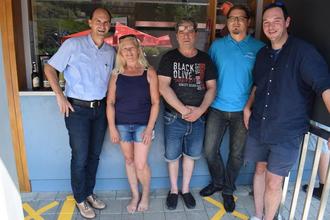 Im Bild von links: Erster Bürgermeister Hartmut Stern, Silvia Fritsch vom Förderverein Freibad Hollfeld, Herr Neamt, Martin Laaser und Tobias Ott, 1. und 2. Vorsitzender des Fördervereins Freibad Hollfeld.