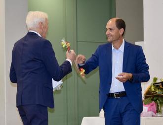 Im Rahmen der Abschiedsfeier übergab Bürgermeister Hartmut Stern als 2. Vorsitzender des Schul-Zweckverbandes symbolisch den Stab zur Weitergabe an den Nachfolger im Mittelschulbereich, Herrn Bernd Fritsch und überbrachte die besten Wünsche für den neuen Lebensabschnitt.