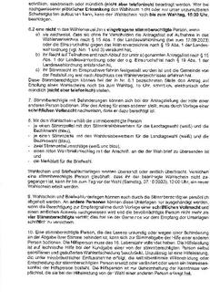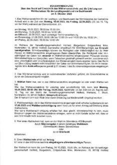 über das Recht auf Einsicht in das Wählerverzeichnis und die Erteilung von Wahlscheinen für die Landtagswahl und die Bezirkswahl am 8. Oktober 2023