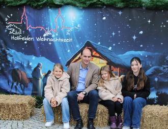 Bürgermeister Hartmut Stern und das Hollfelder Christkind mit seinen Engeln freuen sich schon auf die bevorstehende Adventszeit.