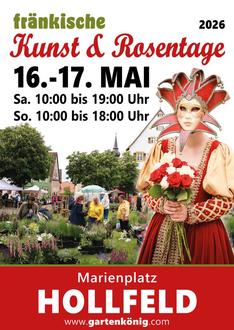 Die Stadt Hollfeld freut sich, mitteilen zu können, dass die Veranstaltung „fränkische Kunst & Rosentage“ am 16. und 17. Mai 2026 stattfinden wird.