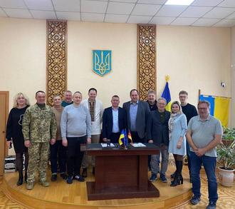 Wir überquerten nach großem Chaos am Grenzübergang am Freitag Abend die Grenze der Ukraine und kamen schließlich am späten Abend dort an. Am Samstag morgen entluden wir unsere Fahrzeuge. Danach brachten wir sie zum Hotel zurück. Danch ging es dann ins Rathaus zur Vertragsunterzeichnung.