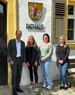 Im Bild von links: Erster Bürgermeister Hartmut Stern, Erzieherin Julia Grasshoff, Kindergartenleitung Constanze Linz und Geschäftsstellenleiterin Nicole Horzela.
