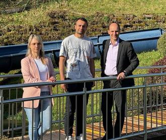 Im Bild von links: Geschäftsstellenleiterin Nicole Horzela, Bademeister Abduljalil Wais und Erster Bürgermeister Hartmut Stern