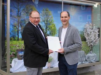 Im Bild von links: Bestatter Martin Schrüfer und Erster Bürgermeister Hartmut Stern