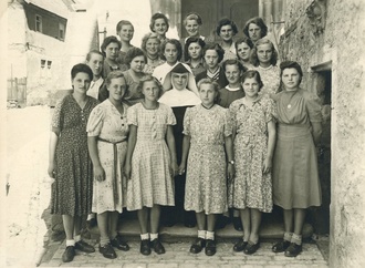Ein Foto zum Weltfrauentag am 8. März: Entlassjahrgang der Landwirtschaftlichen Berufsschule in Iphofen mit Sr. Willerma Sauer im Jahr 1951; Sammlung A. Franz; Repro StadtA Ip.