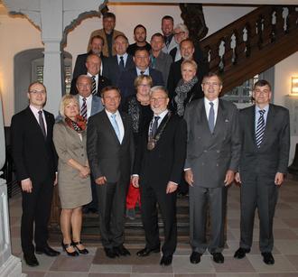 Der ausscheidende Stadtrat 2008-2014 am 28. April 2014 mit 1. Bürgermeister Josef Mend und Ehrenbürger Baldwin Knauf; Stadtarchiv Iphofen, Bildersammlung.