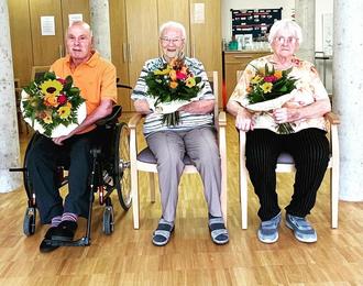 Die Einrichtungsleitung Andrea Troll beglückwünscht alle mit einem Blumenstrauß und freut sich auf die Zusammenarbeit.
