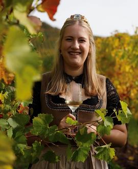 Weinprinzessin Susanna I. repräsentiert die beliebten Weine und begleitet Sie charmant durch das Winzerfestwochenende.