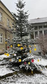 Wie im letzten Jahr stand auch heuer der Sternenwunschbaum im Hof vom Altenbetreuungszentrum. Jeder, der einen dieser Wünsche erfüllen wollte, konnte sich einen Wunschstern ganz einfach vom Baum pflücken.