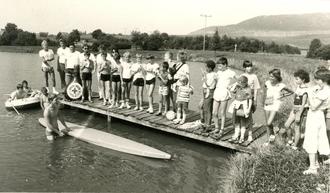 Ferienpassaktion der Wasserwacht Iphofen am Stadtsee mit (v.l.) Raimund Träger, Georg Rechter und Walter Kaluza; Foto: Stadtarchiv Iphofen, Bildersammlung (NL Heinz Roos)