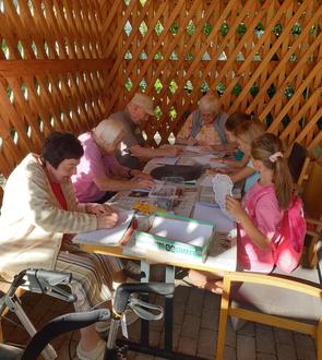 Bei sommerlichem Wetter wurde zusammen gebastelt, was allen Beteiligten große Freude bereitete. Die Kinder hatten sichtlich Spaß und die Seniorinnen und Senioren verfolgten das bunte Treiben mit Begeisterung.