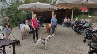 Am vergangenen Wochenende wurde das Altenbetreuungszentrum von ganz besonderen Gästen aus Oberscheinfeld besucht: Zwei Ponys, Flocke und Lilifee, zwei Hunde, Mia und Paula, sowie eine kleine Ziege namens Shade sorgten für einen unvergesslichen Tag voller Freude und Herzlichkeit. Die tierischen Glücksbringer unter der Leitung von Fr. Dietrich brachten strahlende Gesichter und eine erfrischende Abwechslung in den Alltag der Bewohner.