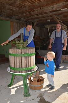 Im Landkreishof zeigt das Museum wie Äpfel und Trauben mit Hilfe einer Obstmühle und einer Kelter zu Saft gepresst werden. Bei der Herstellung von frischer Butter und Buttermilch dürfen Klein und Groß selbst Hand an das historische Butterfass legen. Zur Belohnung gibt es nach getaner Arbeit Saft und Buttermilch als kleine Kostprobe.
