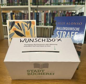 Leserinnen und Leser haben in der Stadtbücherei die Möglichkeit, eigene Buchwünsche einzureichen. Am Counter der Stadtbücherei steht eine Bücher-Wunschbox bereit, in die ausgefüllte Wunschzettel eingeworfen werden können.