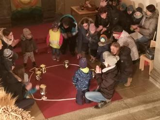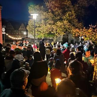 Anlässlich der St.-Martins-Feier des evangelischen Kindergartens Pusteblume gestalteten Pfarrerin Christine Kern und die Erzieherinnen gemeinsam mit den Krippen- und den Vorschulkindern eine Andacht in der Hellmitzheimer Kirche. Im Anschluss daran zog der lange Martinszug durch das Dorf. In den kleinen Kinderhänden leuchteten die von den Vätern zuvor liebevoll gestalteten “Laterneneimerchen“ um die Wette. An den Tagen rund um St. Martin wurde jedem der über 80-jährigen Hellmitzheimer*innen ein kleiner Gruß mit einem Lichtlein von den Kindergartenkindern vorbeigebracht. Ein paar von Ihnen erhielten an diesem Abend, während des Martinsumzugs, ihren Lichtgruß überreicht. Wieder am Kindergarten angekommen, konnten sich die Teilnehmer*innen gegrillte Bratwürste, Glühwein, selbstgemachten Kinderpunsch und selbstgebackenen Ulmer schmecken lassen. Der Posaunenchor spielte passende Lieder dazu. Am Schluss kauften sich viele noch eine leckere Pusteblumen-Spezial-Müsli-Mischung, die der Kindergarten, gemeinsam mit dem Elternbeirat, selbst hergestellt hat.