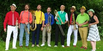 1 Dame, 7 Herren, 2 Klarinetten, 6 Blechbläser, 7 Franken und 1 Oberpfälzer – macht zusammen 8 HerzensBLECHer. Und die sind ganz nah am Puls der Zeit: „App in die Zukunft!“ heißt ihr neues Programm, in dem die innovativsten Errungenschaften menschlichen Erfindungsgeistes einer gnadenlosen Analyse unterzogen werden. Denn Fortschritt ist nicht aufzuhalten und der digitale Wahnsinn lauert überall, wenn Apps den Alltag bestimmen und sich die Waschmaschine mit dem Toaster vernetzt.