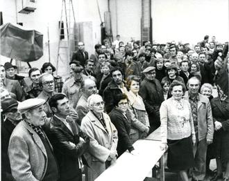 Aufzeichnung der Sendung „Jetzt red i“ des Bayerischen Rundfunks am 10. November 1976 in der Turnhalle Iphofen; Stadtarchiv Iphofen, Bildersammlung. Die Bürgersendung, in der vor Ort Bürger aktuelle Themen vorbringen dürfen und Politiker antworten, gibt es seit 1971.