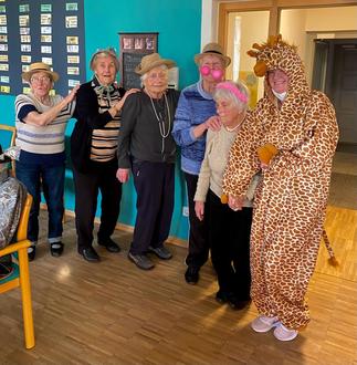 Stimmungsvoll ging es am Rosenmontag auch in unserer Tagespflege im ABZ zu. Die Mitarbeiterinnen begrüßten jeden Tagespflegegast persönlich und lud zum gemeinsamen Singen, Tanzen und Fröhlichsein ein. Unsere Gäste und Mitarbeitenden hatten eine Menge Spaß.