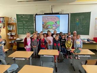 Den Auftakt bildete eine gemeinsame Hofpause zusammen mit allen Schülern und Schülerinnen der Grundschule in Bodelstadt. An diese schloss sich die Einführung ins Buch „Matti, Momme und die Zauberbohnen“ an.